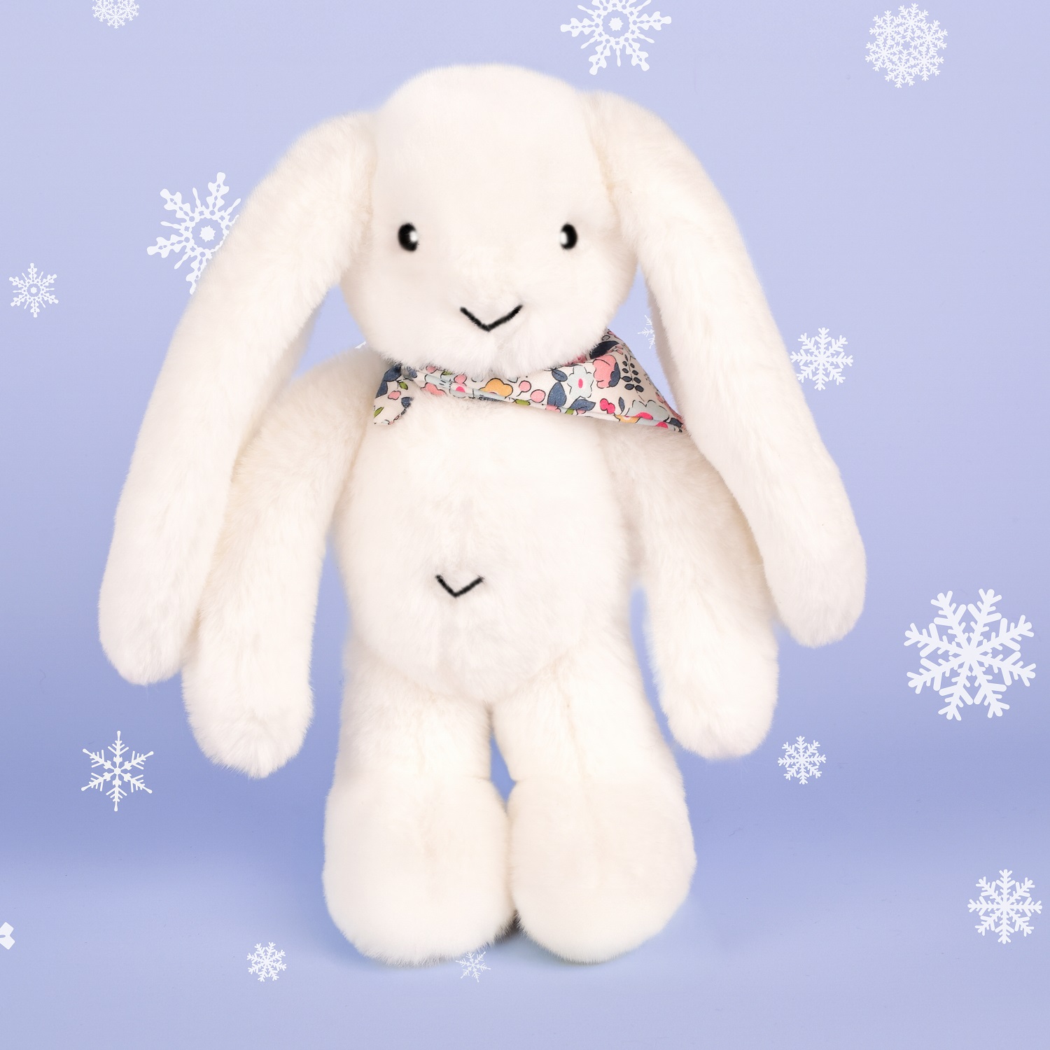 Ultra-doux et élégant avec son bandana fleuri, cette peluche apporte douceur et réconfort à tous, favorisant un attachement durable. Pour adulte ou enfant, cette peluche lapin est une idée cadeau originale, idéal dès la naissance.