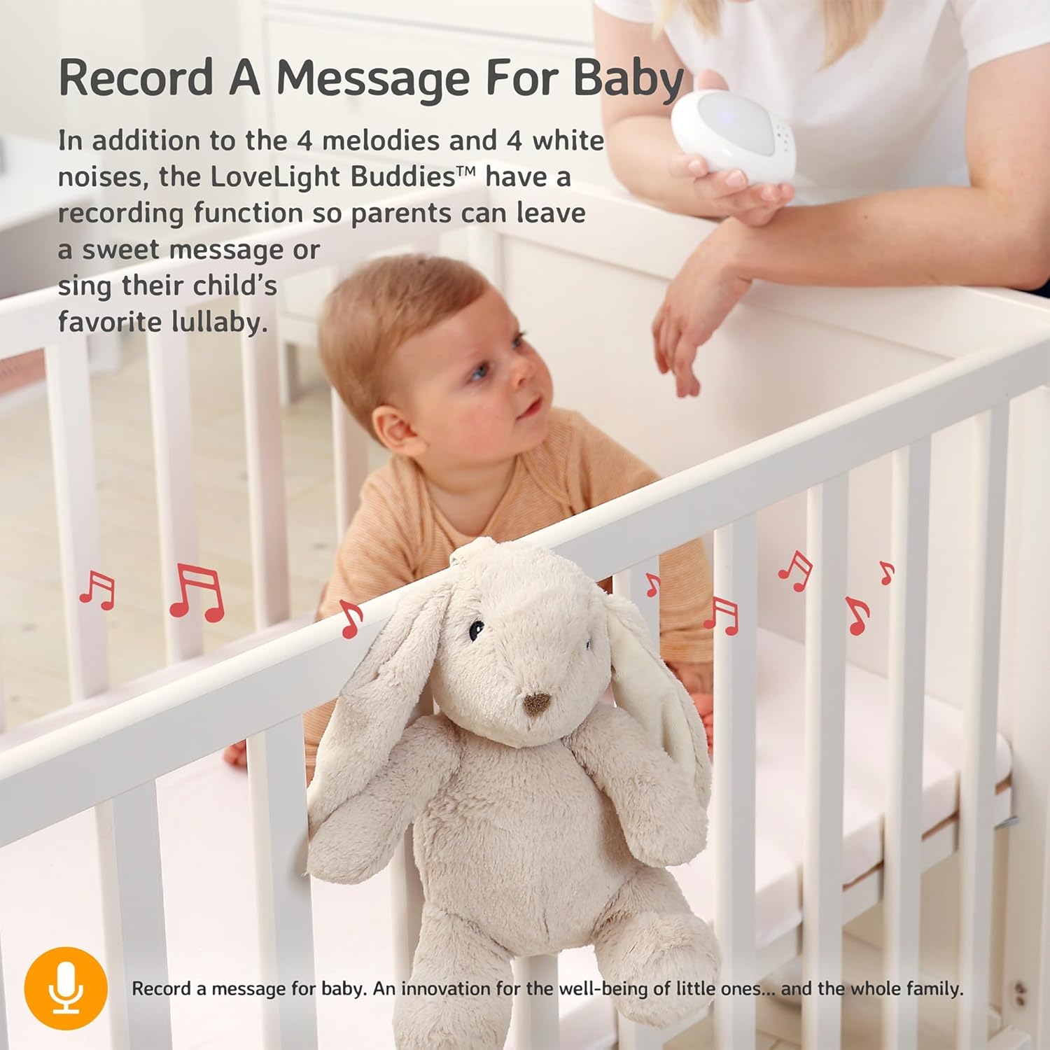 Les tout-petits ont un fort besoin d'être rassurés et de sentir la présence chaleureuse de leurs parents. Les peluches veilleuses LoveLight Buddies ont été créés pour aider à combler ce besoin. Ces peluches multisensorielles sont dotées de sons apaisants, de lumières calmantes et d'un toucher tout doux pour aider à avoir cet effet apaisant. Une véritable innovation au service du bien-être des petits... et des parents.