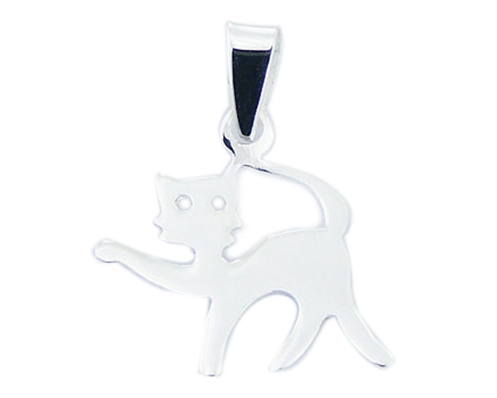 pendentif en argent représentant une silhouette de petit chat debout et de profil. Hauteur : 2,5cm