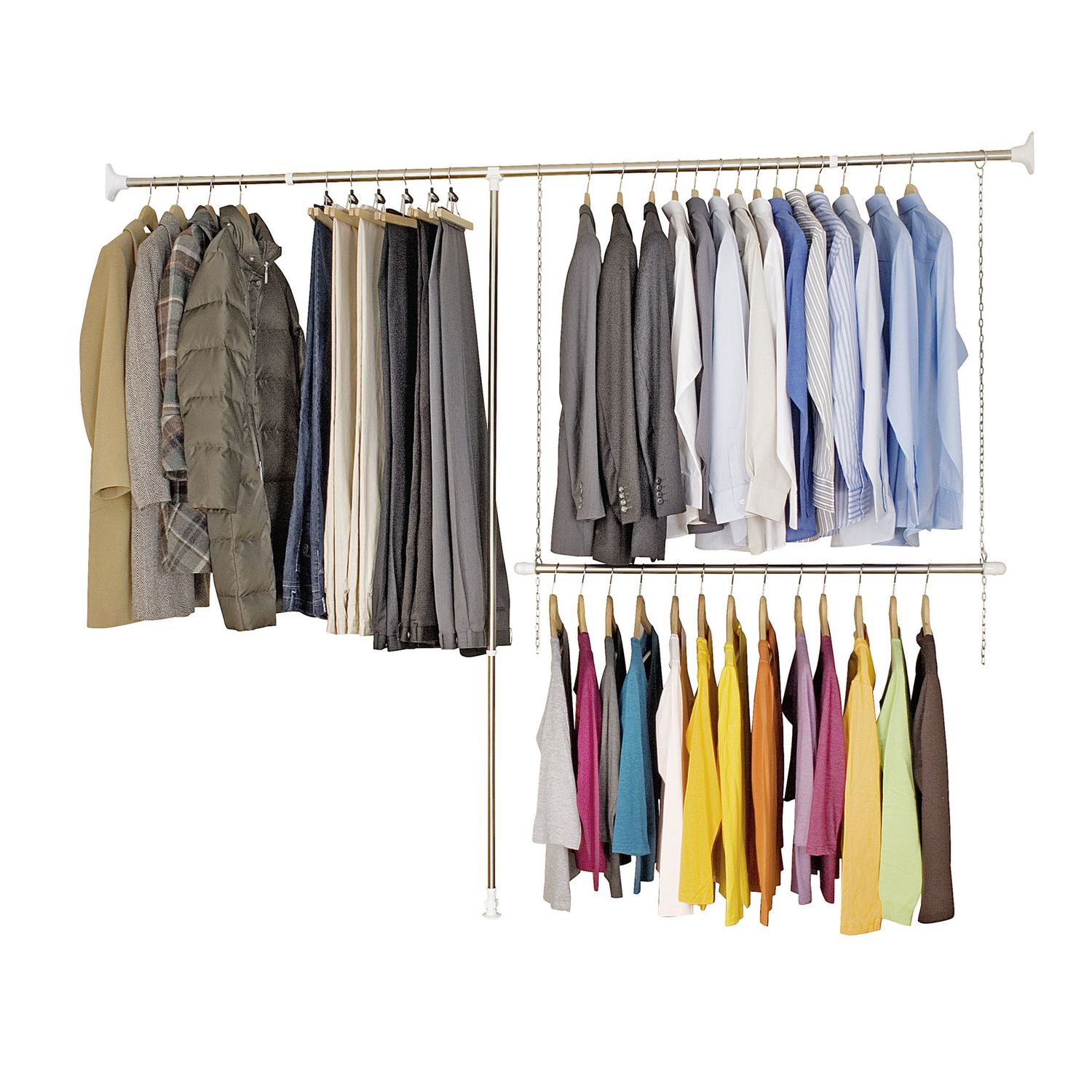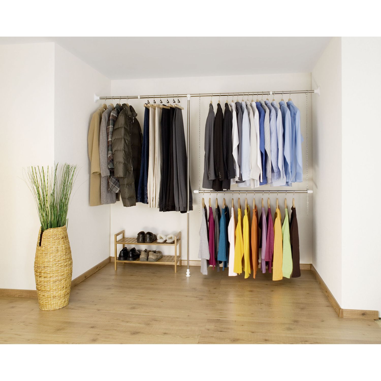 - Système de dressing composé de 3 tringles : 2 barres de garde-robe dont une avec chaine réglable en hauteur et 1 barre de support.
