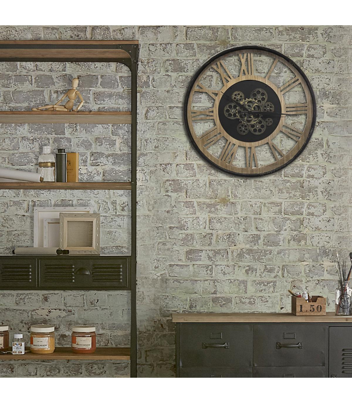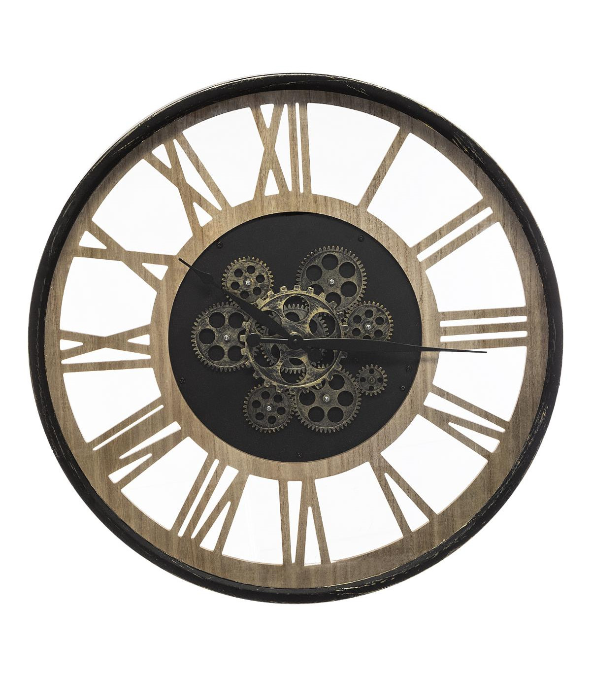 Pendule murale en Métal et Bois avec mécanisme apparent D 57 cm --