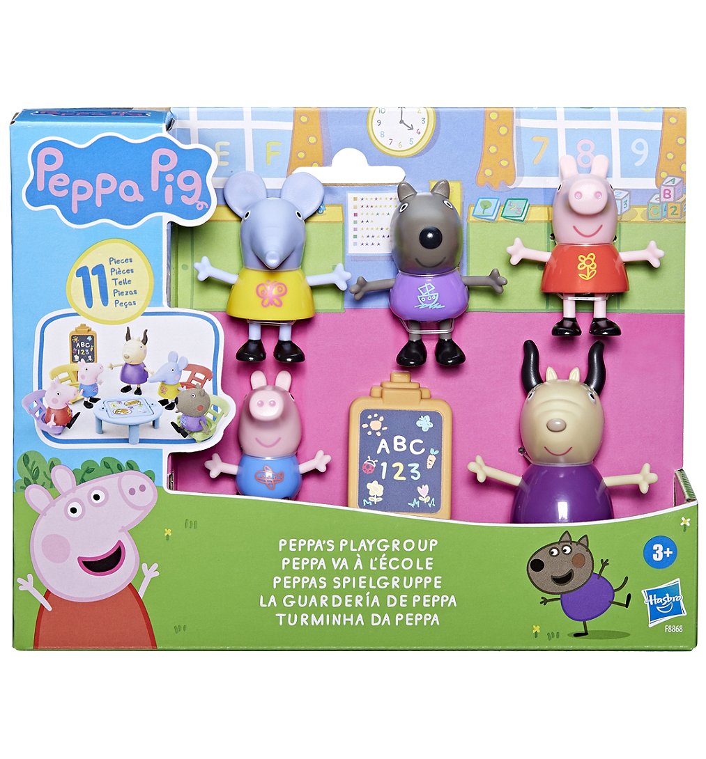 Quand vient le temps d'aller à l'école pour les tout-petits, les jouets comme le coffret Peppa va à l'école peuvent les aider à imaginer ce qui les attend. Avec 5 figurines, dont celle de la professeur Madame Gazelle, de même que des accessoires comme une table, des sièges et un tableau noir sur chevalet, les enfants peuvent imaginer l'heure du jeu, du déjeûner et même des leçons. Les figurines peuvent vraiment s'assoir sur les sièges et la table bascule pour passer du cours de dessin à l’heure du déjeûner. Les jouets Peppa comme le coffret Peppa va à l'école sont de super cadeaux pour les filles et les garçons (à partir de 3 ans). Copyright ABD Ltd/Ent. One UK Ltd. Hasbro et tous les termes associés sont des marques de commerce de Hasbro.