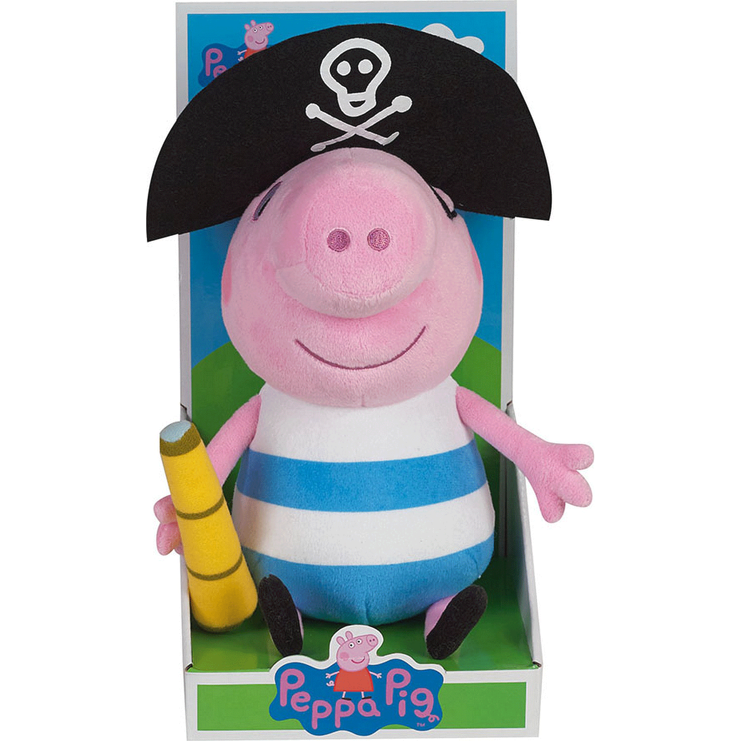 Découvrez le petit frère de Peppa, George, déguisé en Pirate. Peluche douce de +/- 25 cm.