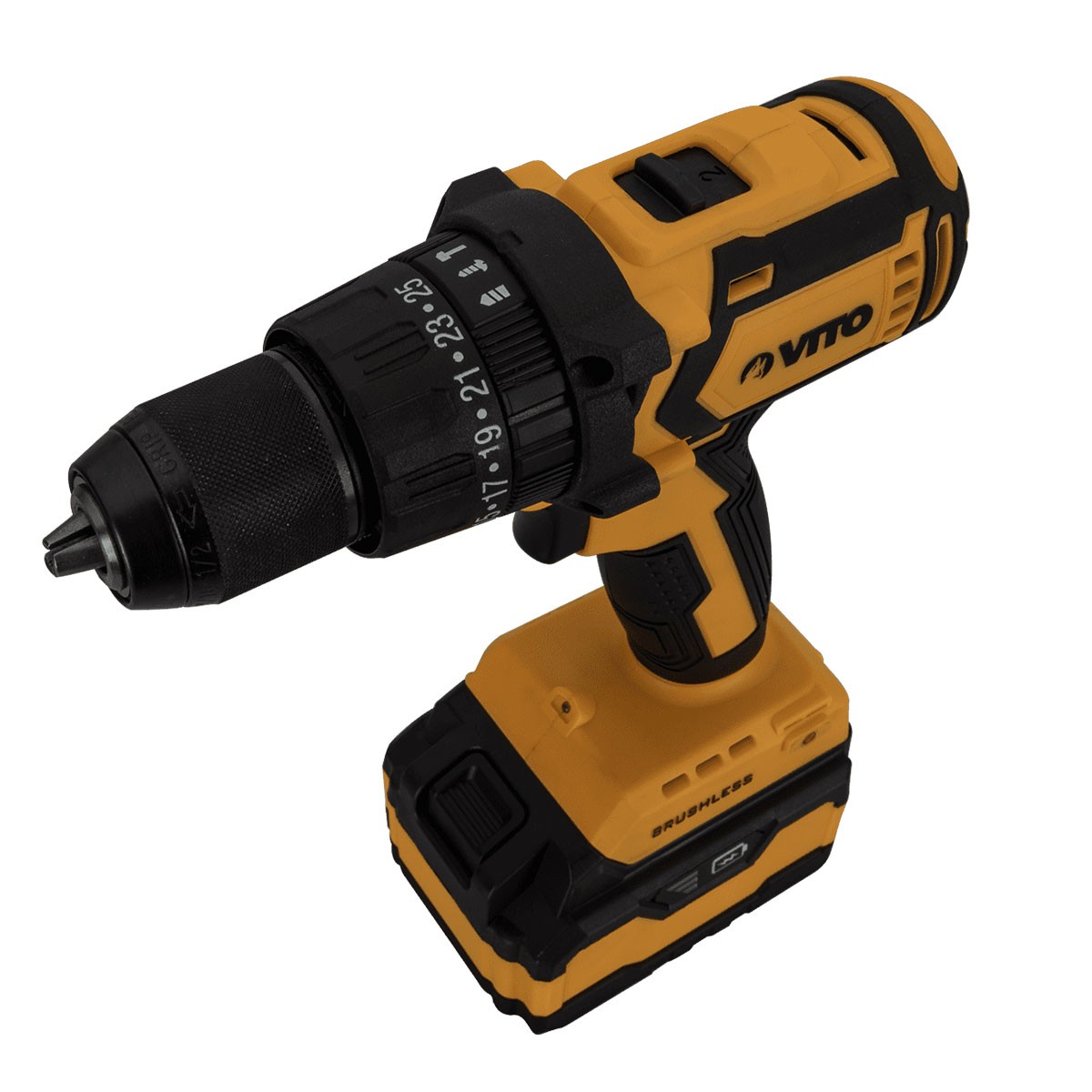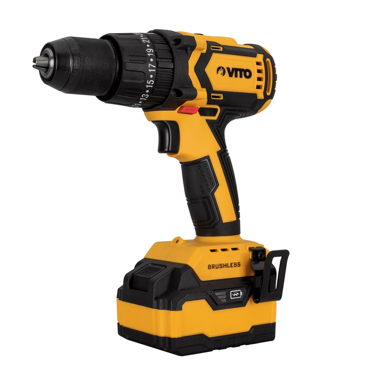 Compacte et légère la perceuse visseuse sans fil VITO 20V dispose d'un moteur brushless vous offrant ainsi fiabilité et robustesse.
