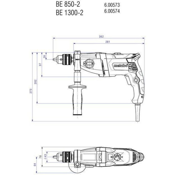 | Libellé | Perceuse - METABO - BEV 1300-2 - Mandrin a clé - Poignée supplémentaire - Béton |