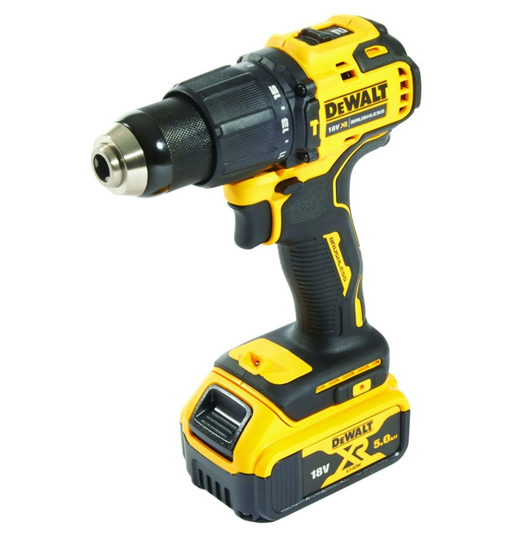 PERCEUSE VISSEUSE COMPACTE PERCUSSION DEWALT XR 18V 5AH LI-ION BRUSHLESS - MANDRIN MÉTAL Comprenant : 1 x Clip ceinture 2 x Batteries XR 18V 5Ah Lion-Ion 1 x Chargeur multi-voltage 1 x Coffret TSTAK Caractéristiques : Catégorie : Perceuse - visseuse sans fil Alimentation18 V Batterie : Li-Ion Ampérage 5 A Couple65 Nm ø perçage bois30 mm ø perçage acier10 mm ø perçage béton10 mm Fréquence de frappe - 10 - 7650 coups/min Fréquence de frappe - 20 - 28050 coups/min Vitesse - 10 - 450 tr/min Vitesse - 20 - 1650 tr/min Poids1,82 kg