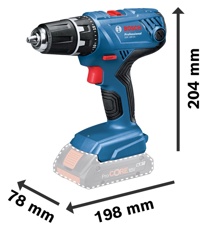 | Libellé | Perceuse visseuse 18 V GSR 18V-21 + 2 batteries 2Ah + chargeur + coffret L-CASE - BOSCH - 06019H100A |