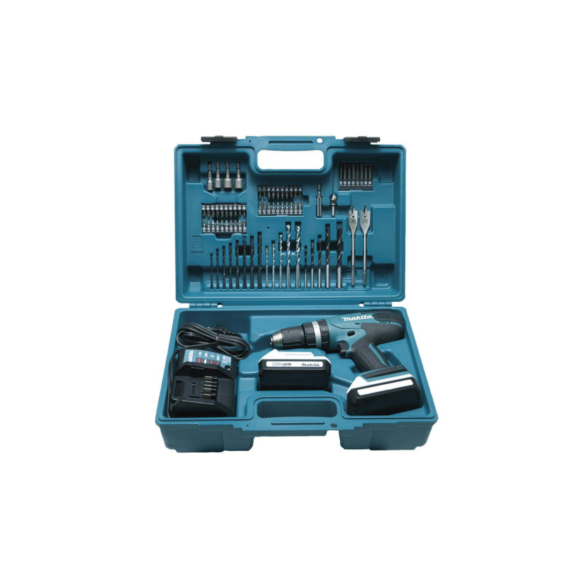 - Accessoires de séries : 2 x 198186-3 Batterie BL1815G (Li-ion 18 V - 1,5 Ah - empreinte spéciale) 1 x 195423-6 Chargeur DC18WA 1 x Coffret synthétique 4 x Douilles à queue (8, 10, 12 et 13 mm) 4 x Embouts courts Hexa (H3, H4, H5, H6) 10 x Embouts courts philips (2 x PH0, 2 x PH1, 3 x PH2, 3 x PH3) 8 x Embouts courts plat (2 x SL4, 2 x SL5, 2 x SL5,5, 2 x SL6,5) 10 x Embouts courts pozidriv (2 x PZ0, 2 x PZ1, 3 x PZ2, 3 x PZ3) 8 x Embouts courts torx (T10, T15, 2 x T20, 2 x T25, T30, T40) 8 x Embouts longs (PH2, PH3, PZ2, PZ3, T20, T30, SL5,5, SL6,5) 8 x Forets acier cylindrique (Ø 3, 3,5, 4, 4,5, 5, 5,5, 6 et 6,5 mm) 5 x Forets béton (Ø 4, 5, 6, 8 et 10 mm) 5 x Forets bois (Ø 4, 5, 6, 8 et 10 mm) 1 x Fraise conique cylindrique 5 taillants