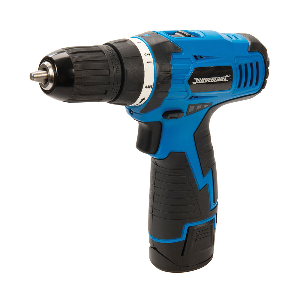 Perceuse-visseuse sans fil alimentée par batterie Li-ion 1,3 Ah disposant d'un chargeur intelligent.