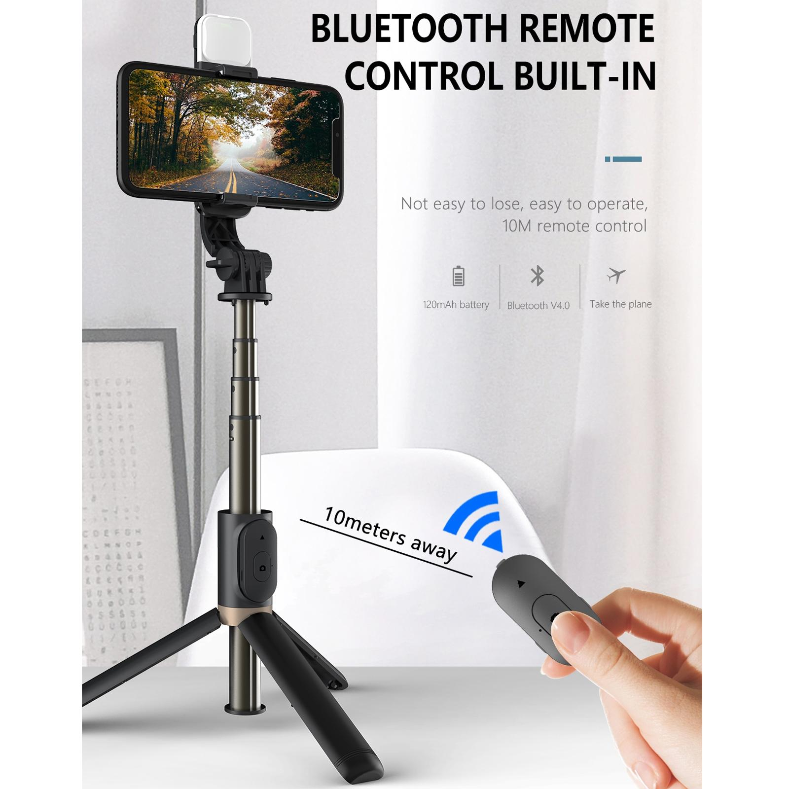 Perche À Selfie Bluetooth Avec Trépied Et Lumière Réglable Pour Téléphone Noir YONIS