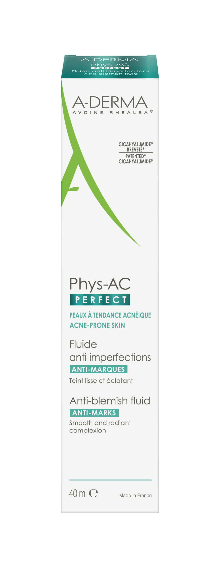Phys-AC PERFECT favorise la diminution des boutons et points noirs et atténue les marques (rouges et hyperpigmentées), pour un teint lisse et éclatant.