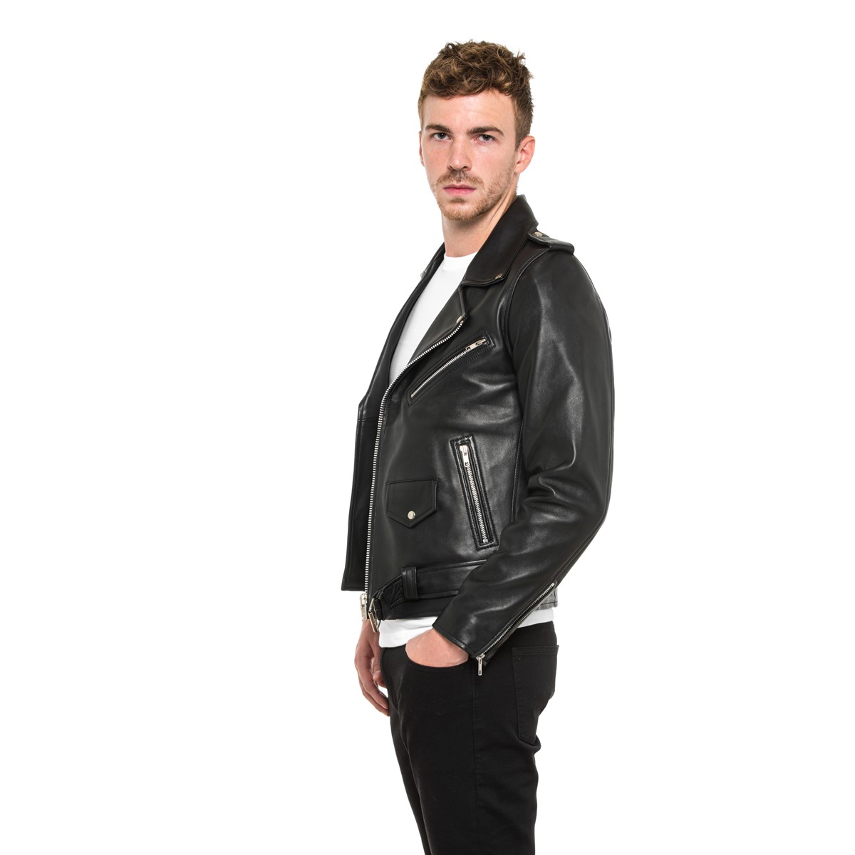 - Perfecto en cuir de vachette pleine fleur