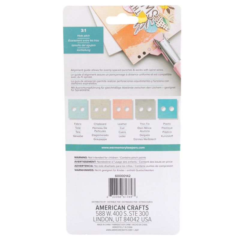 Ce poinçon pour créer des reliures à spirales est l'outil idéal pour vous aider à créer des livres personnalisés, des journaux, des albums, des cahiers et carnets reliés en spirale. Il contient une poignée rose confortable et un guide d'alignement pour un poinçon parfait et précis à chaque fois. Cette pince en métal permet de perforer 2 trous en une seule fois. Le poinçon coupe à travers de nombreux matériaux, notamment le tissu, le papier, le plastique, le cuir... Dimensions : 15 x 5 x 2,5 cm. Référence 'We R Memoy Keepers' : 60000142.