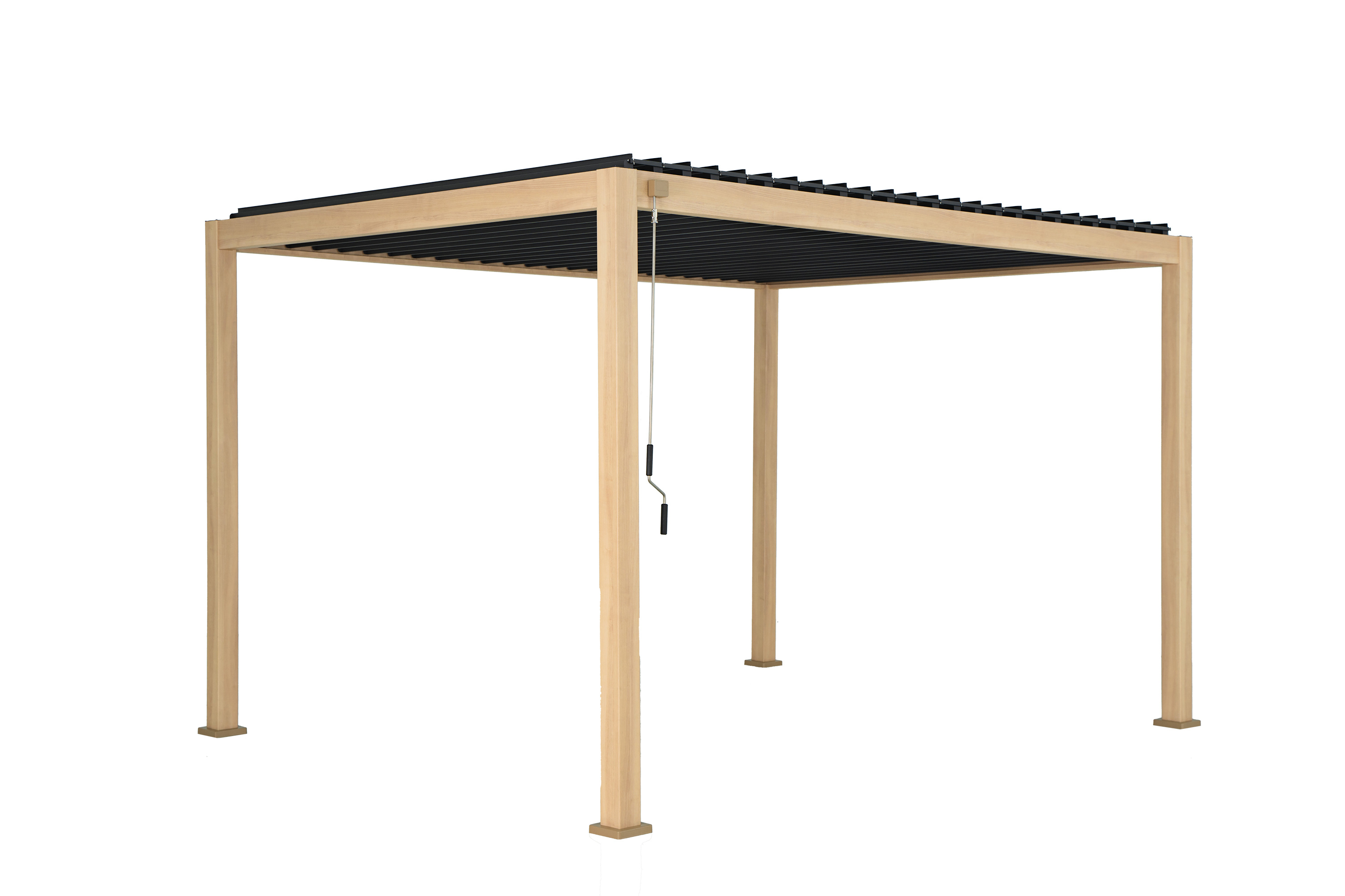 | Libellé | Pergola bioclimatique 4x3m en aluminium imitation bois avec toit en lames orientables coloris gris |