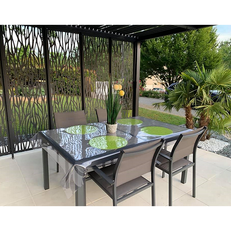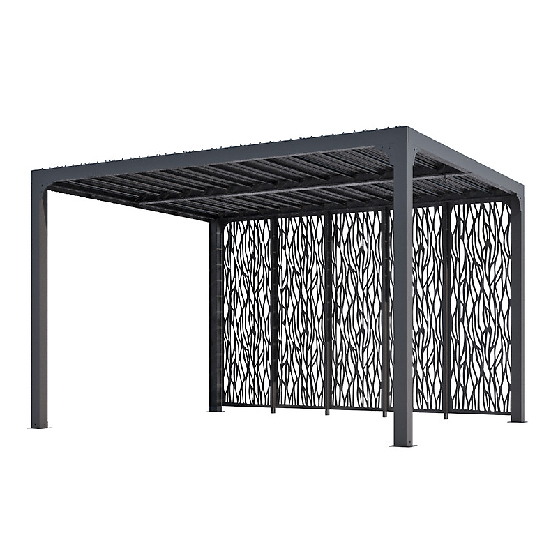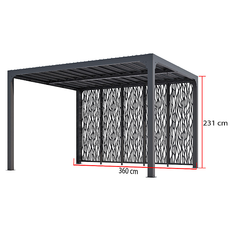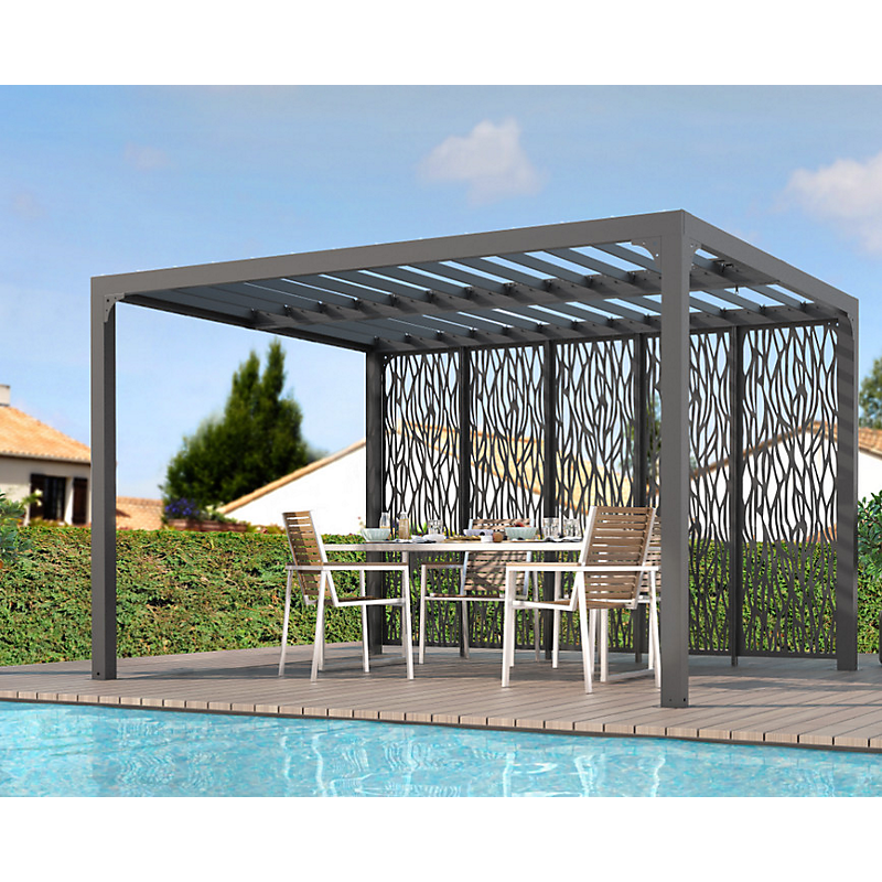 Pergola bioclimatique ALUMINIUM avec 5 panneaux moucharabieh coloris gris pour côté 3,60 m / Surface de p