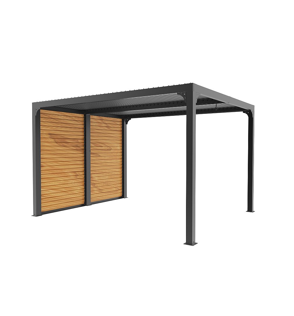 Pergola bioclimatique ALUMINIUM coloris gris anthracite livrée avec des ventelles latérales aluminium mob