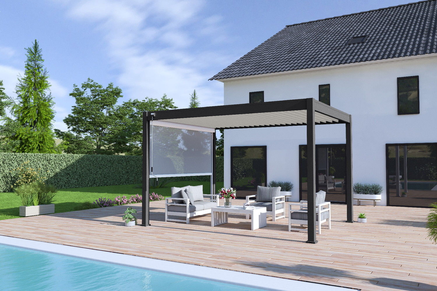Pergola bioclimatique autoportée collection VS 3x4M Noire charbon et Blanche
