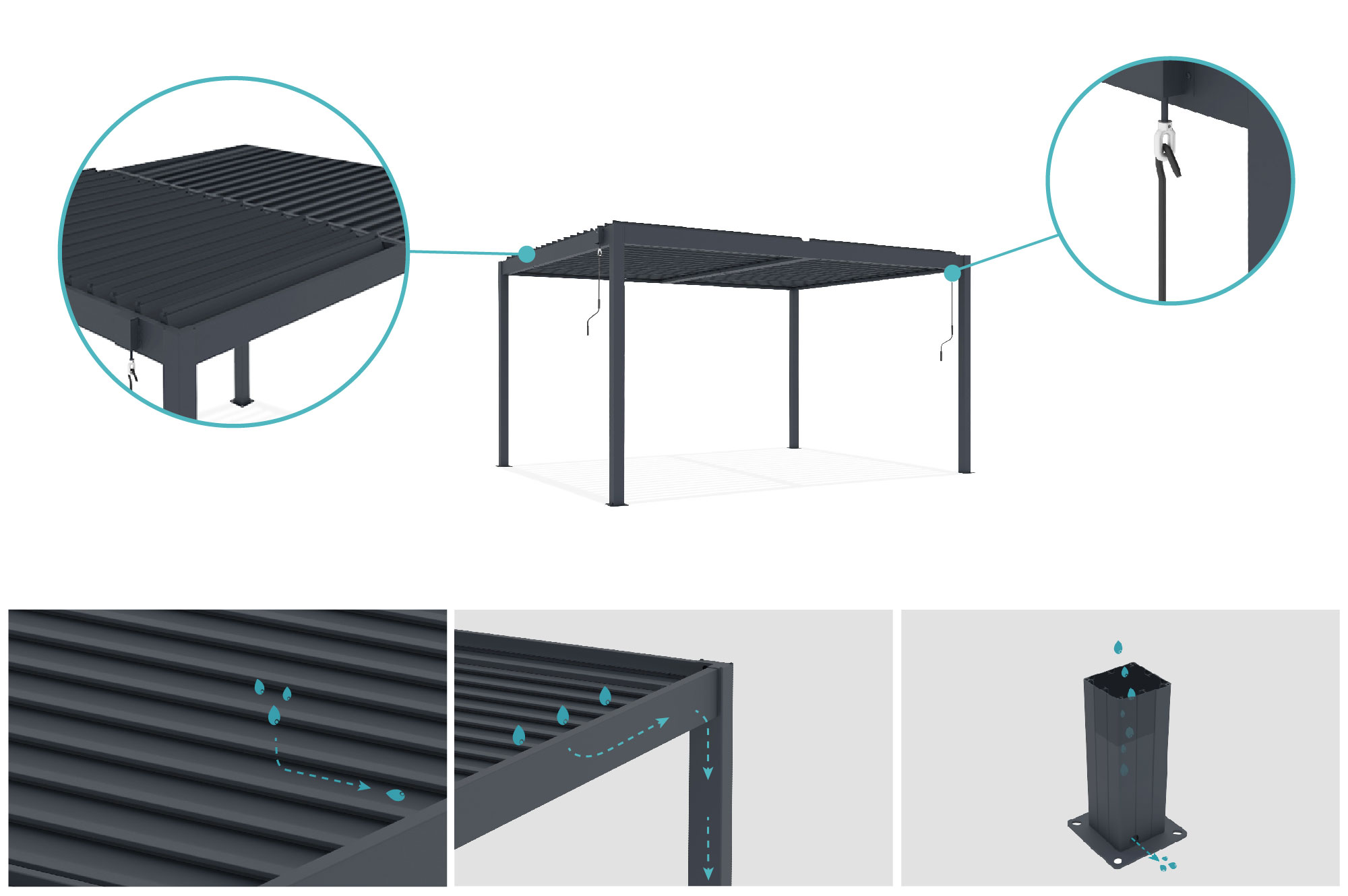 | Libellé | Pergola Bioclimatique autoportée PIANA 4x3m - Aluminium - Gris - Lames orientables acier |