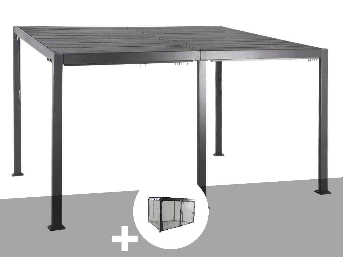 Pergola bioclimatique Avila 4 x 3 m graphite en aluminium + 6 moustiquaires - Hespéride