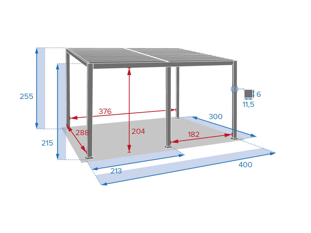 | Libellé | Pergola bioclimatique Avila 4 x 3 m graphite en aluminium + 6 moustiquaires - Hespéride |