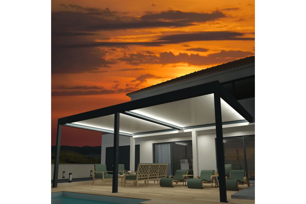 Pergola Bioclimatique COCOON XL Mixte Gris anthracite / Blanc 9,00x4,110m Verin + LED