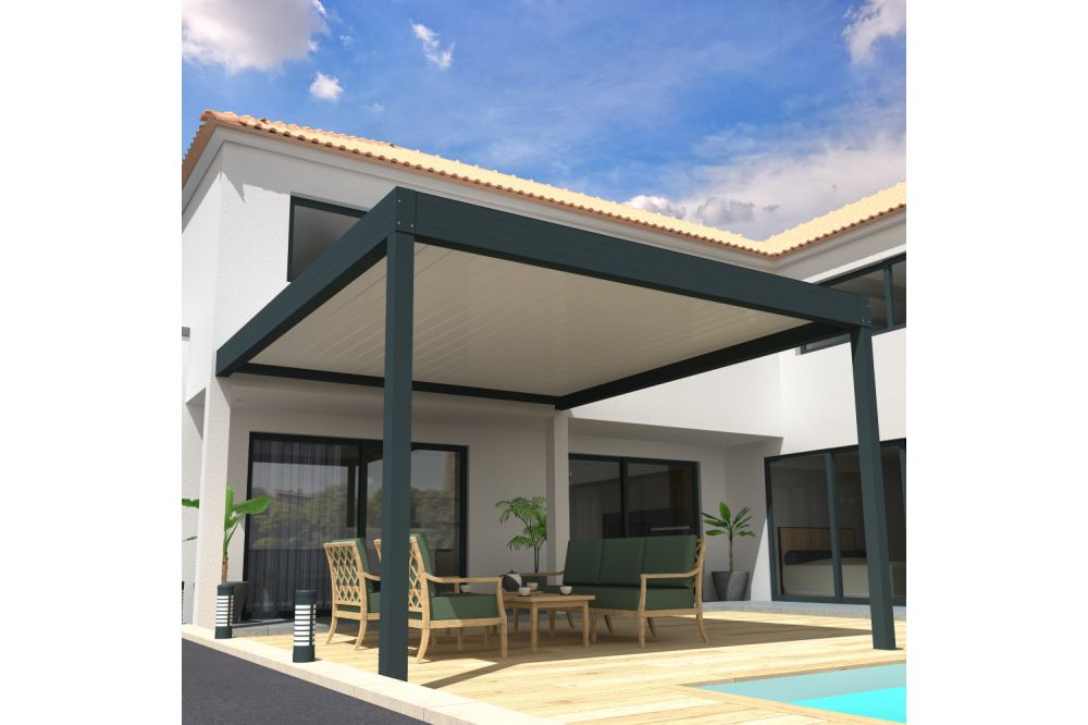 Pergola Bioclimatique COCOON XL perpendiculaire Horaire Mixte Gris anthracite / Blanc 6,015x4,50m Verin +