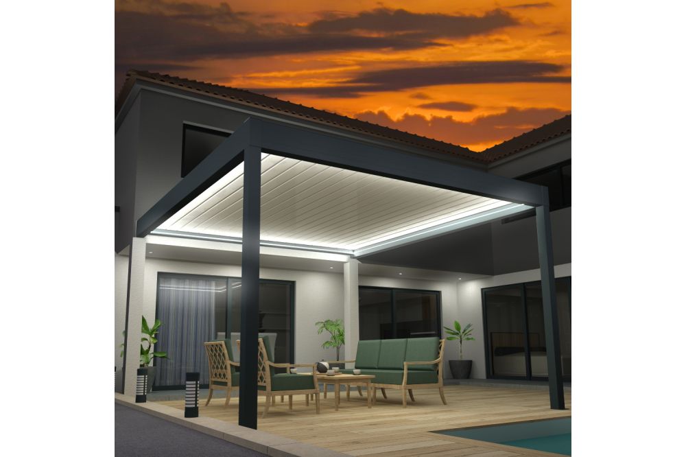 | Libellé | Pergola Bioclimatique COCOON XL perpendiculaire Horaire Mixte Gris anthracite / Blanc 6,015x4,50m Verin + LED |