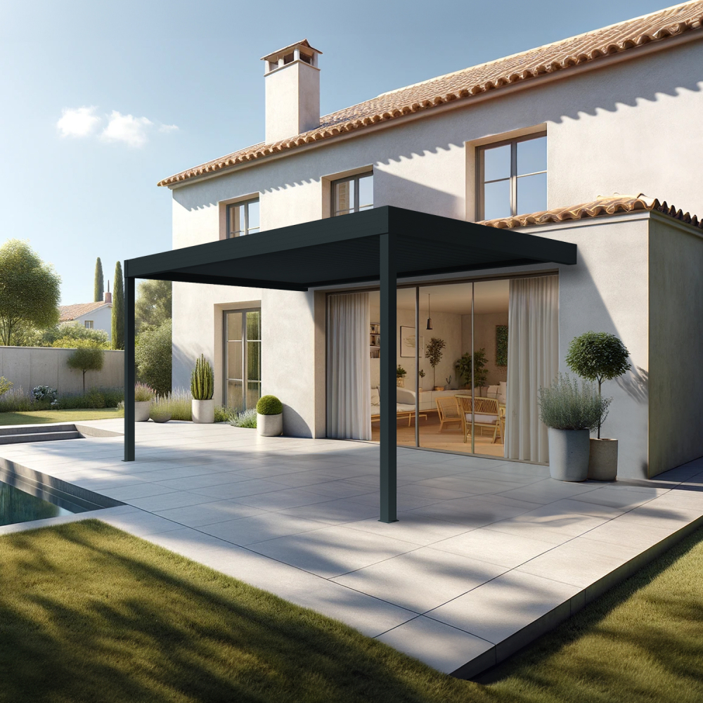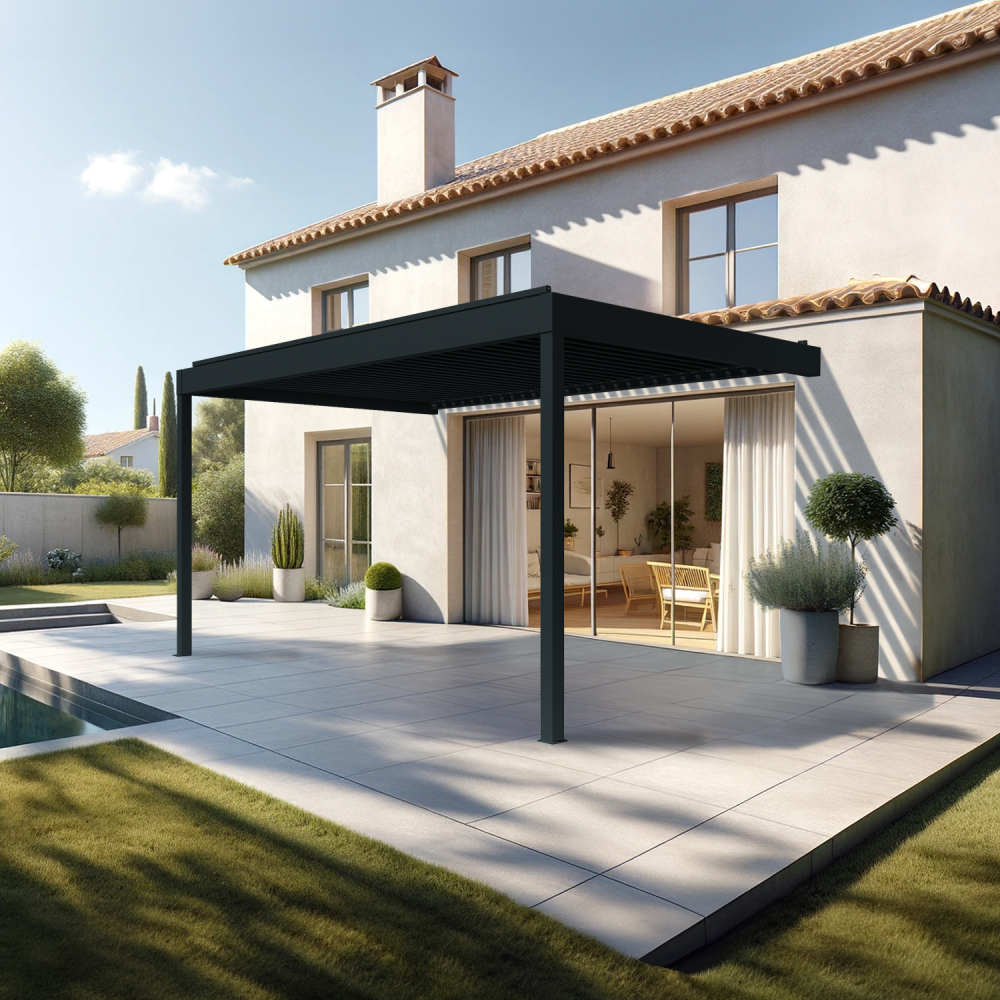 | Libellé | Pergola bioclimatique HELY perpendiculaire 4,97x3,00m Vérin à télécommande (Gris anthracite) |