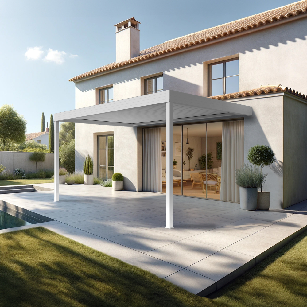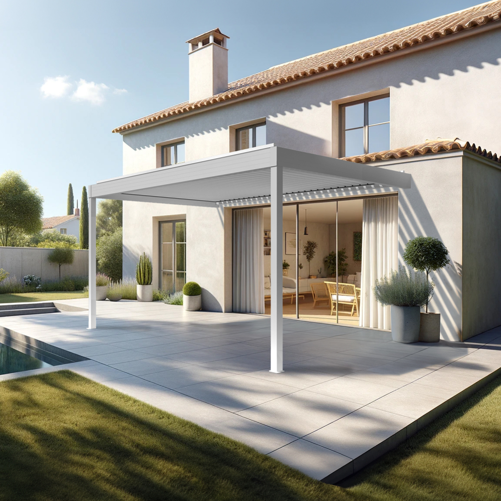 | Libellé | Pergola bioclimatique HELY perpendiculaire 4,97x4,00m Vérin à télécommande (Blanc) |