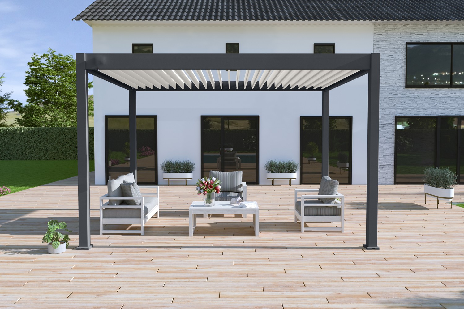 | Libellé | Pergola bioclimatique motorisée Ombréa 3x4M autoportante - Anthracite et Blanc |