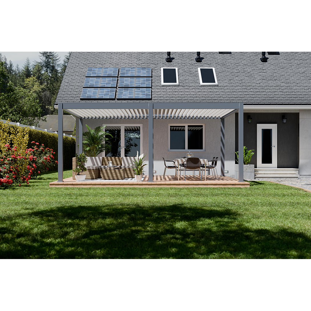 | Libellé | Pergola bioclimatique motorisée Ombréa 4x6M autoportante - Anthracite et Blanc |