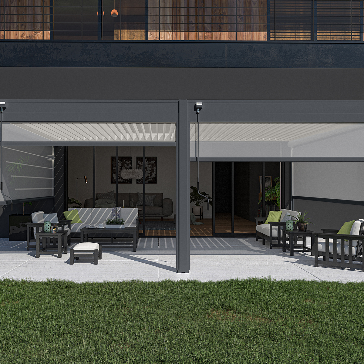 Pergola bioclimatique Ombréa adossée 4x6M - Anthracite/blanc - S1
