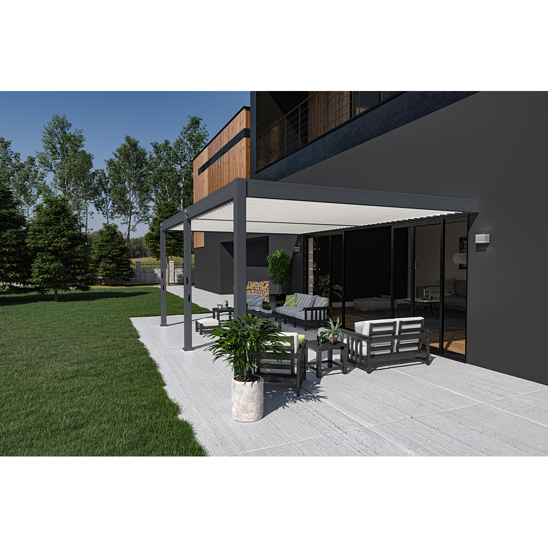| Libellé | Pergola Bioclimatique Ombréa adossée VS 4x6M V2 - Anthracite et Blanc |