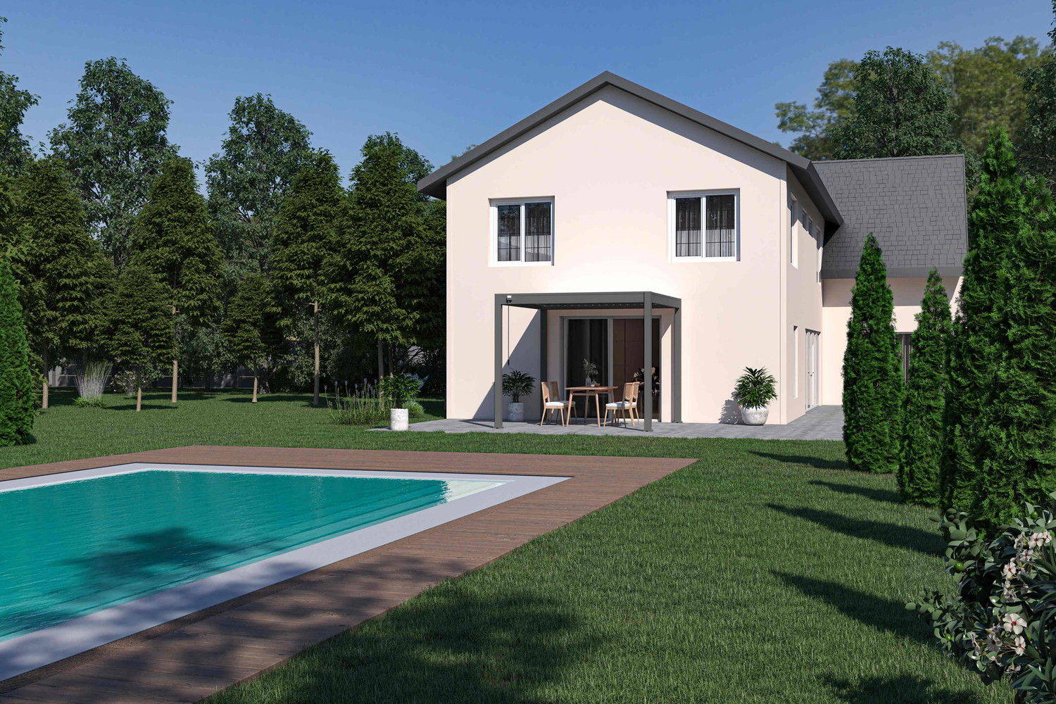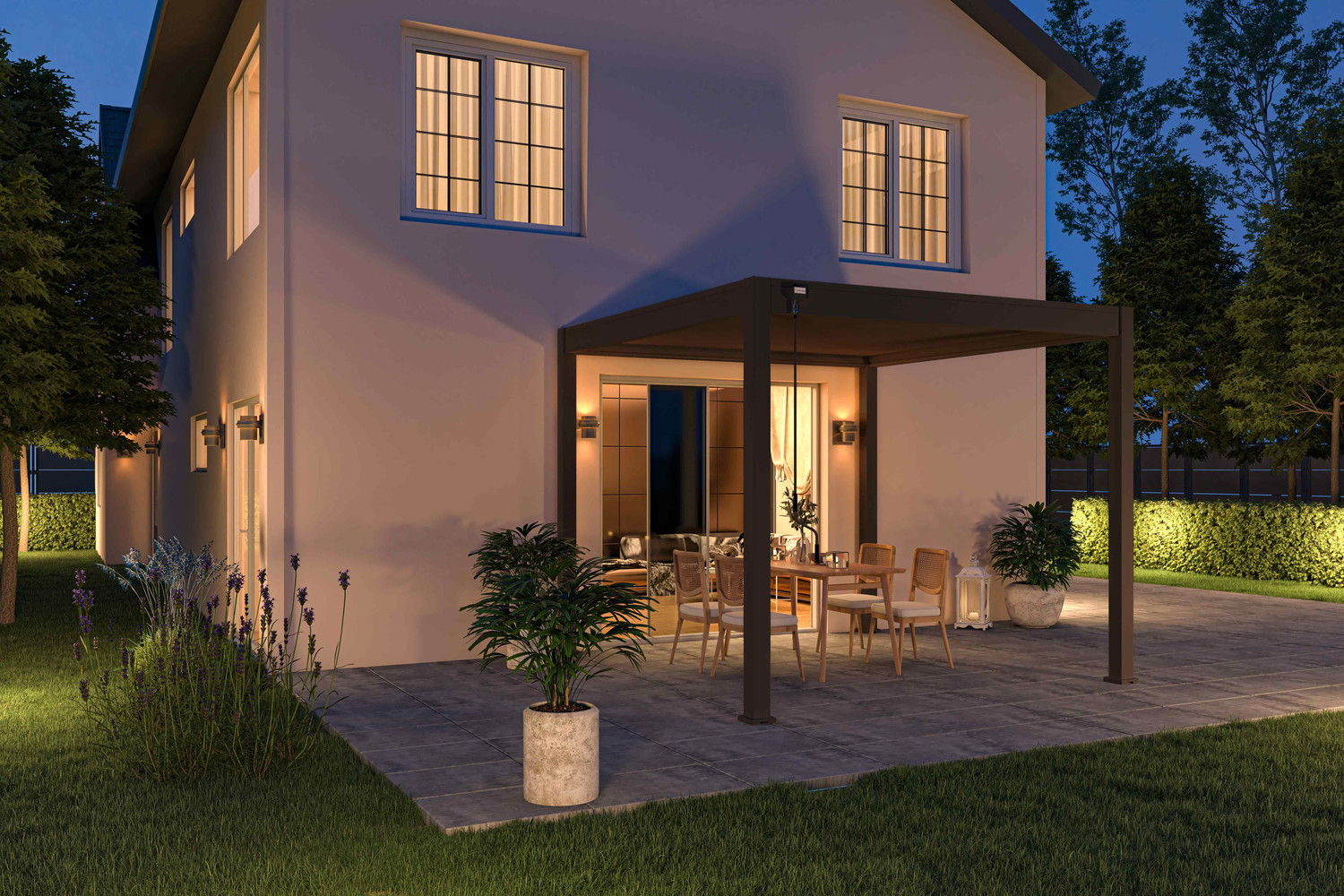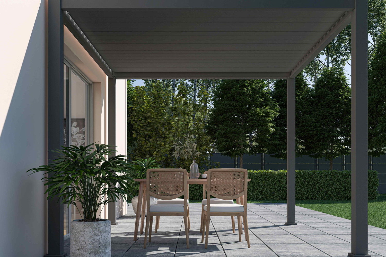 Conçue pour s’adapter aux conditions climatiques, la pergola bioclimatique Ombréa® VS 3x3M à lames doubles orientables prolonge votre saison extérieure.