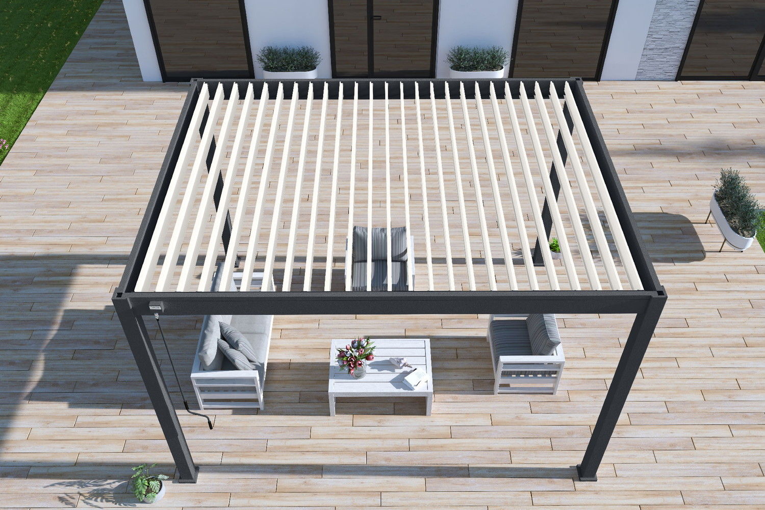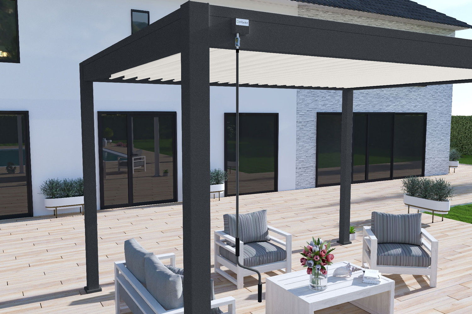 Pergola bioclimatique Ombréa autoportante 3x4M - Anthracite/blanc - S1