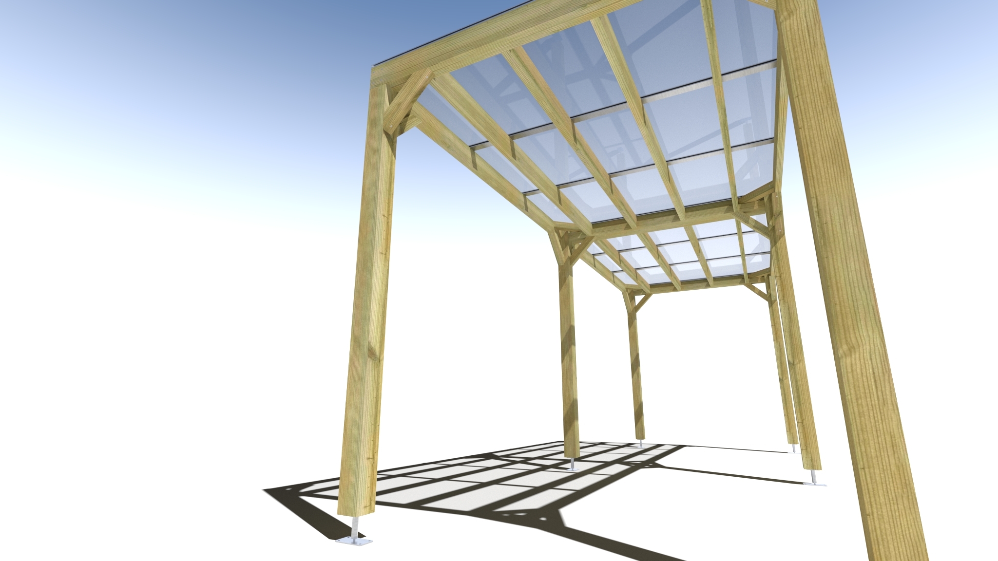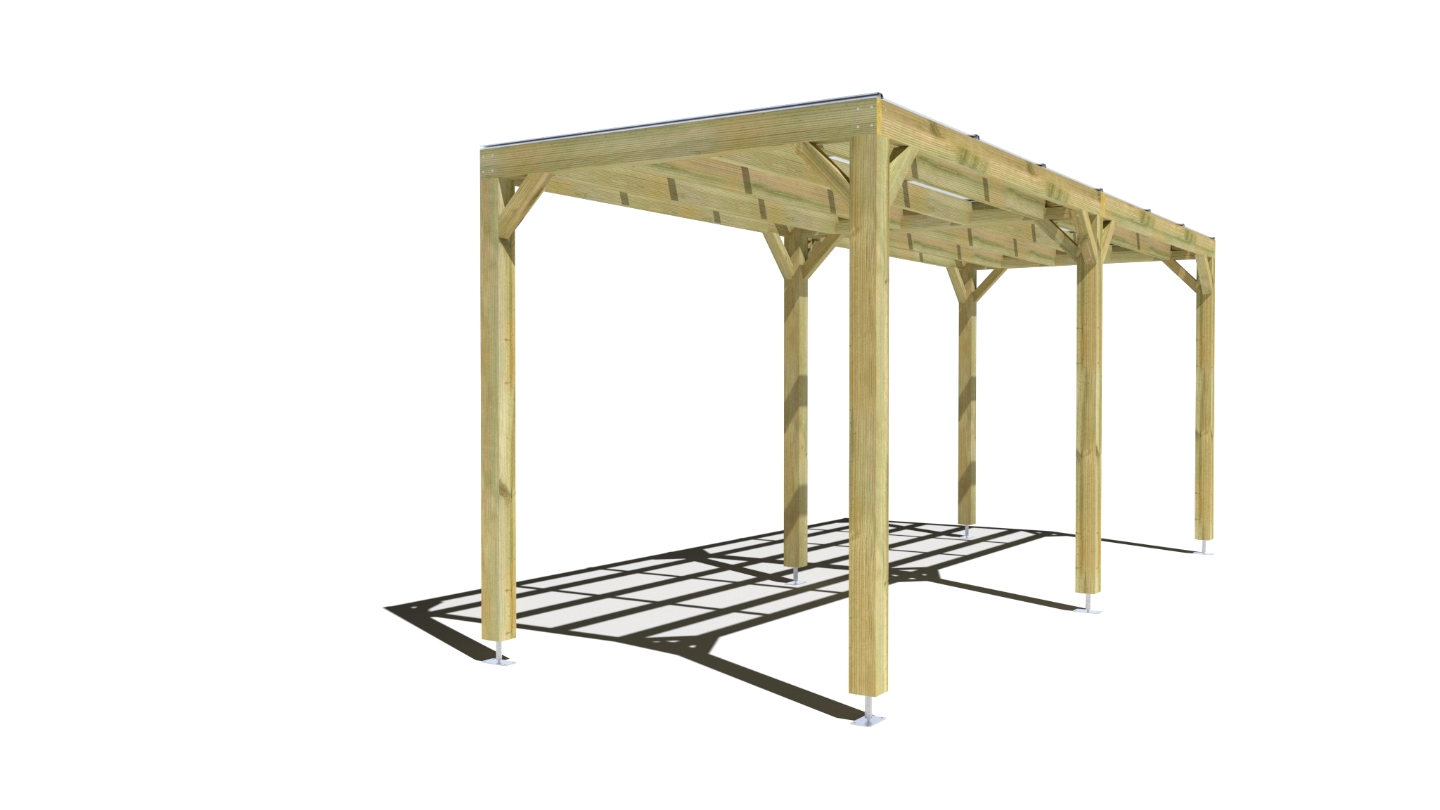 • Gamme de carport bois avec toiture bac acier et gouttières intégrées