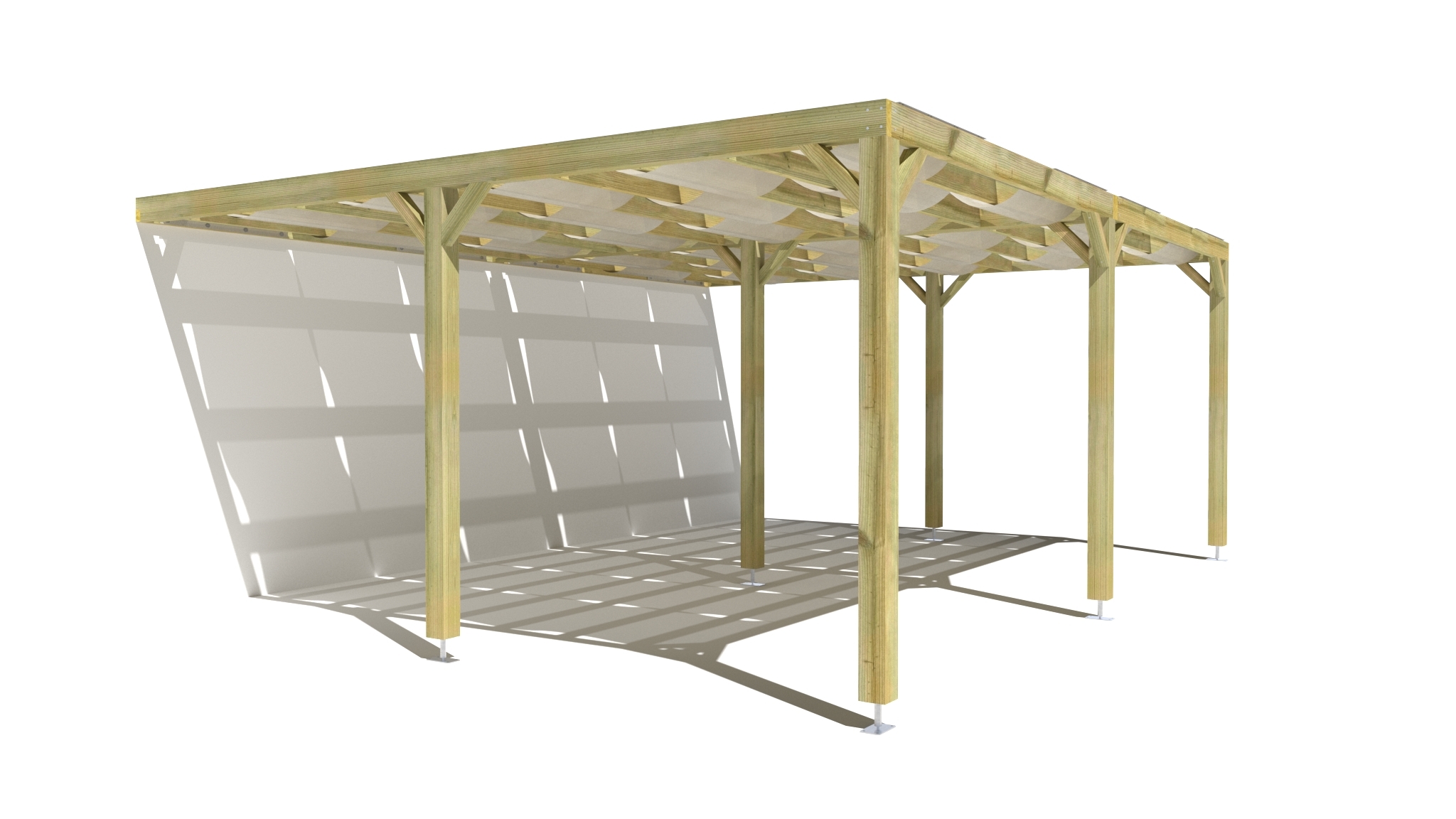 • Gamme de carport bois avec toiture bac acier et gouttières intégrées