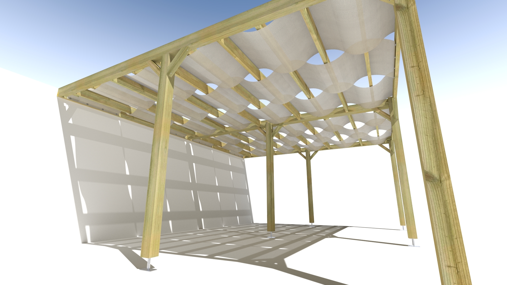 | Libellé | Pergola bois - 6m x 5m - adossée - sens largeur - voilage semi-transparent inclus |