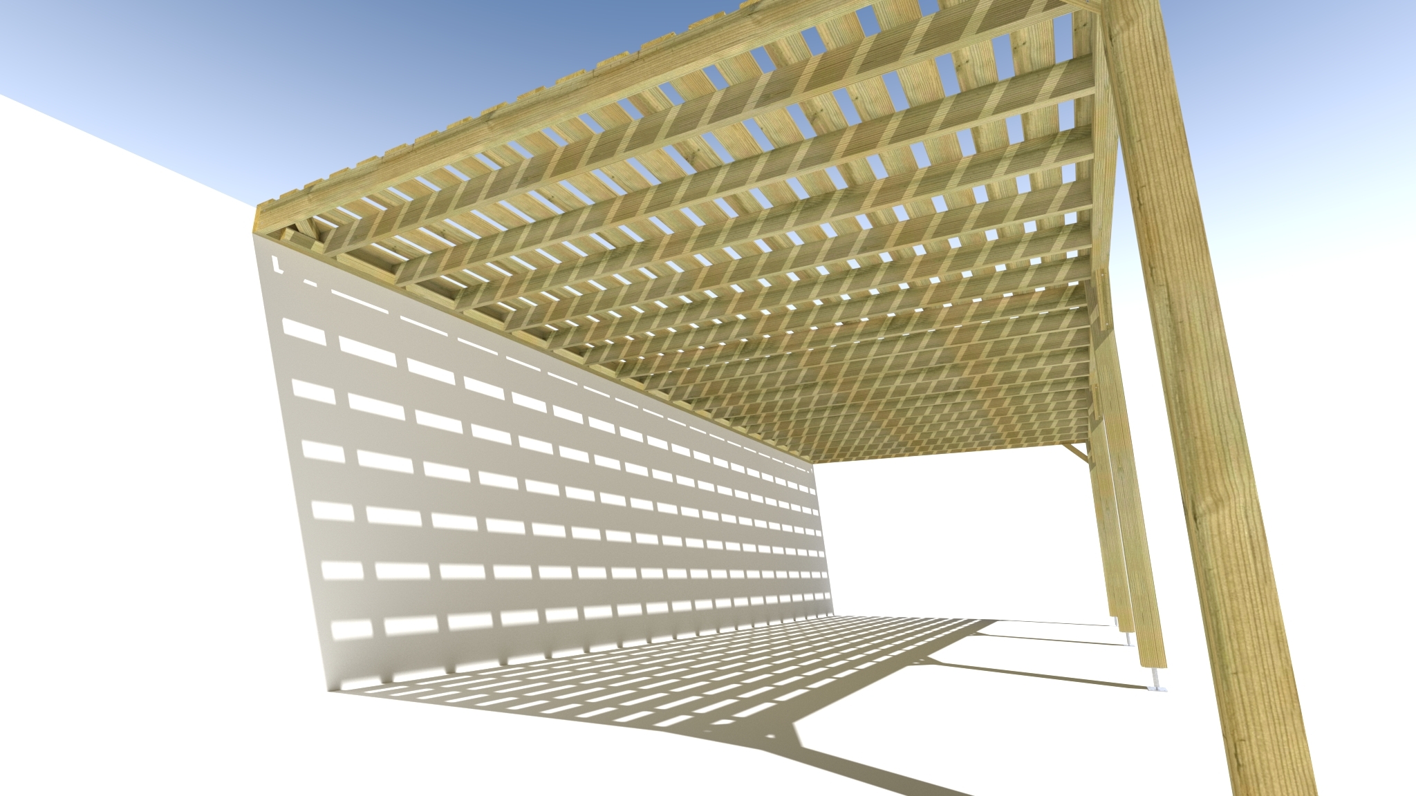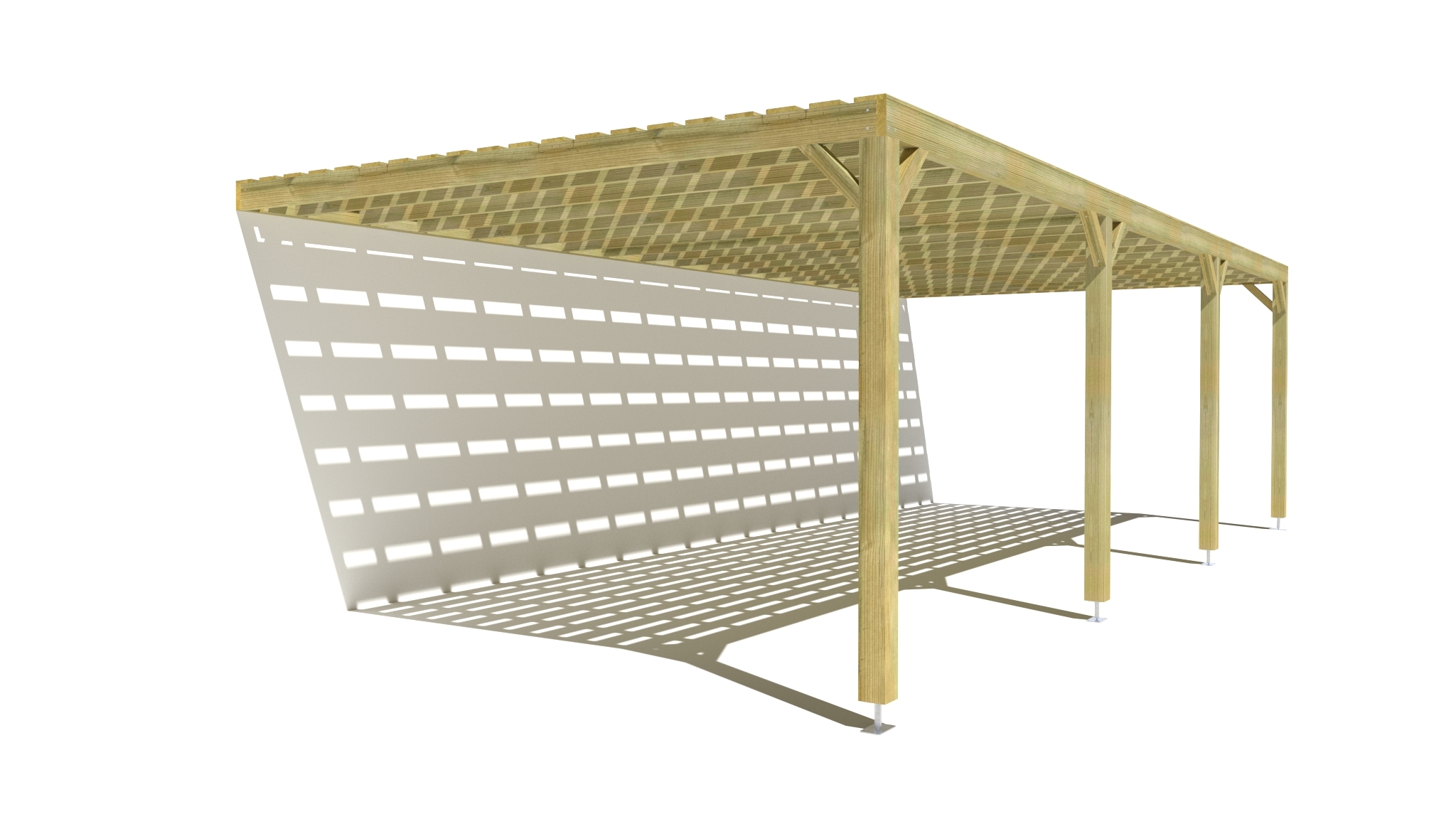 • Gamme de carport bois avec toiture bac acier et gouttières intégrées