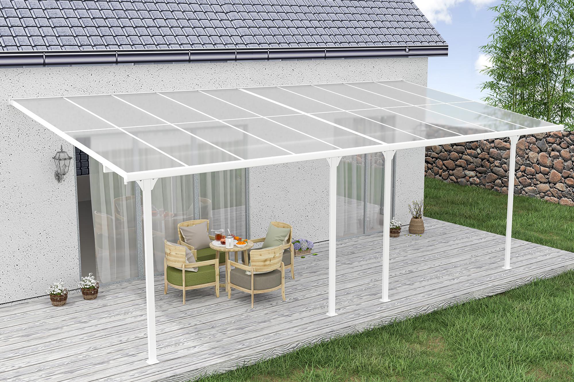Libellé Pergola/Carport adossé 18m² KLEO 6x3m aluminium Blanc - Toit en polycarbonate premium