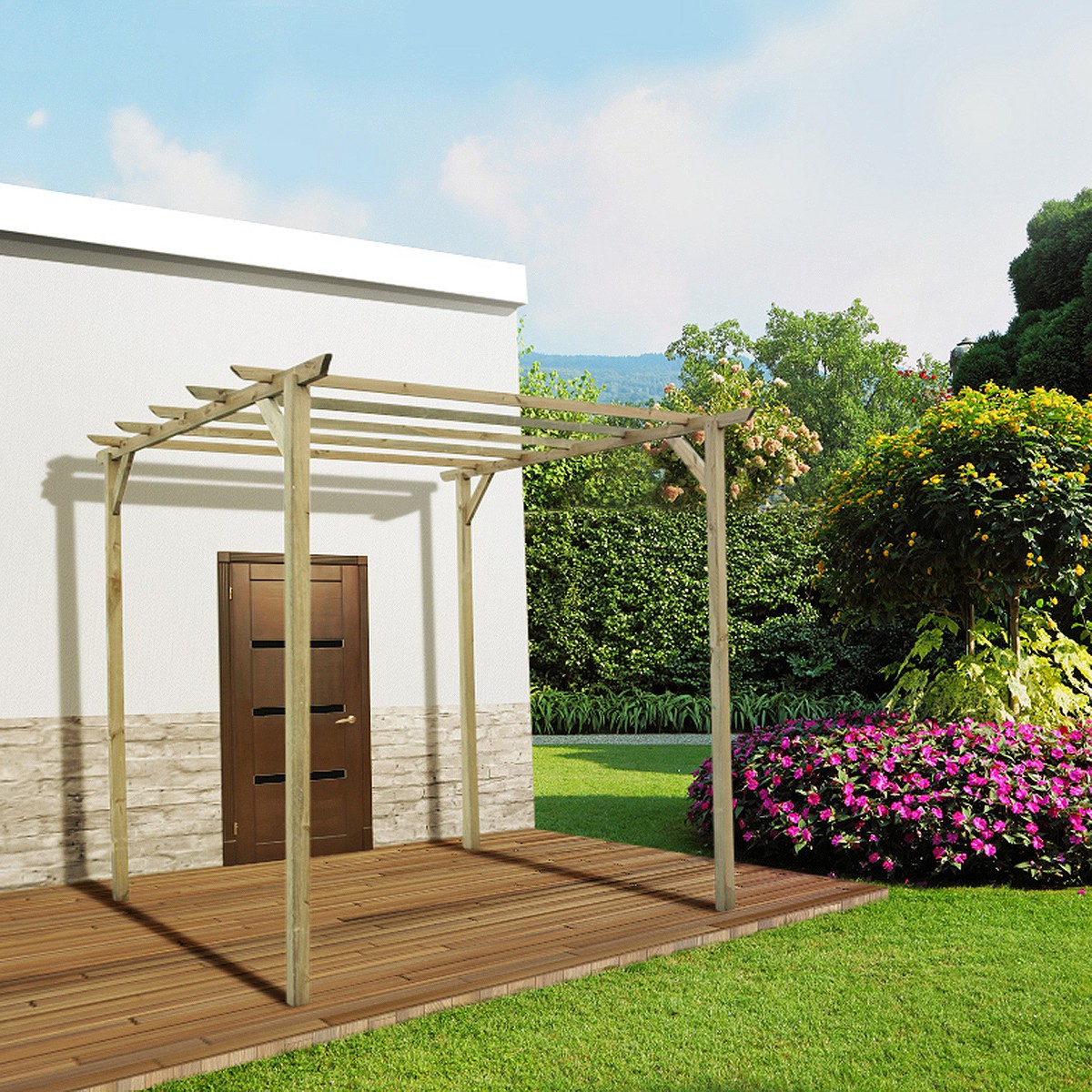 | Libellé | Pergola de terrasse en bois traité, Cerise |