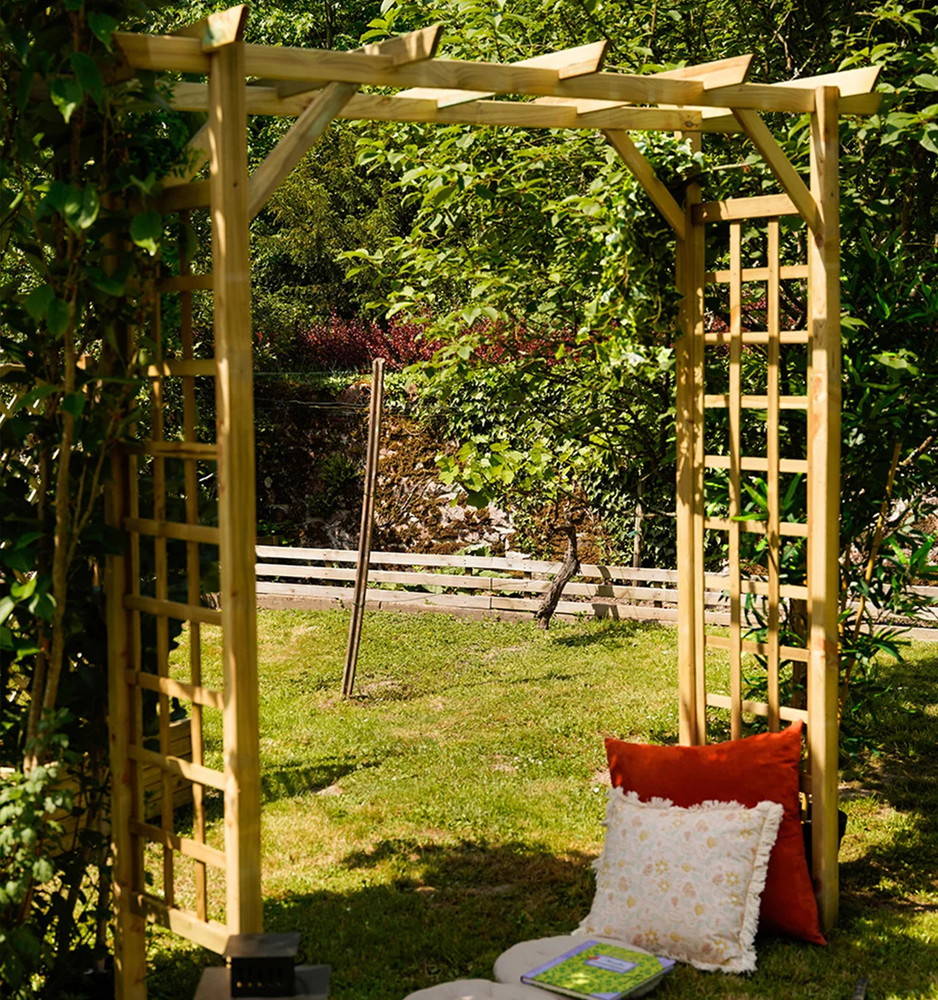 Cette arche en bois est fabriquée en pin et en acier traités pour résister face aux intempéries. Le bois est certifié FSC, ce qui signifie qu’il est issu d’une gestion durable et responsable des forêts. Son traitement autoclave lui permet de supporter l’humidité et résister aux intempéries, aux attaques d’insectes ou encore à la moisissure. Les tiges résisteront également face à la corrosion et à la rouille.