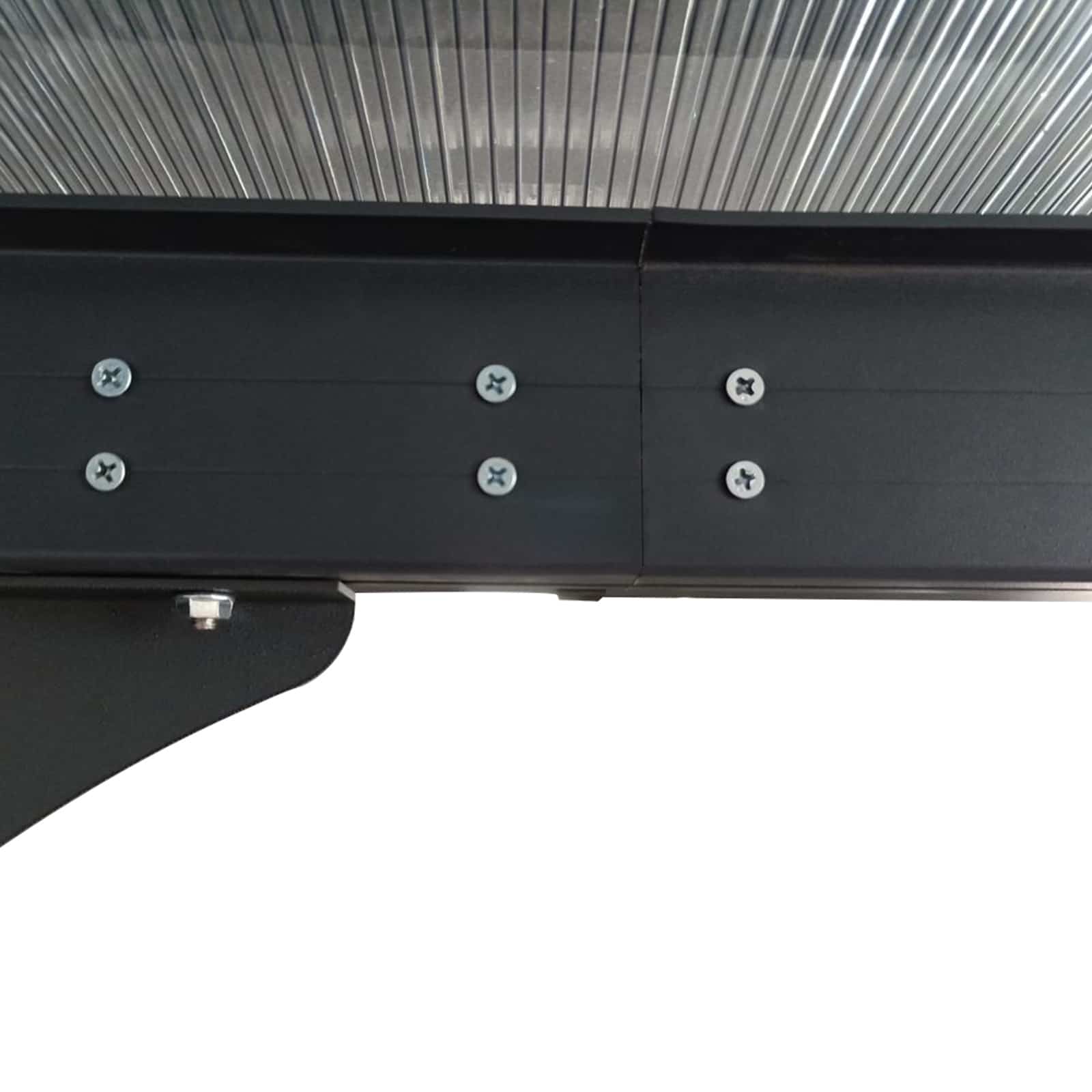 Pergola en aluminium avec traitement couleur anthracite pour protéger les portes et fenêtres de la pluie. Vous pouvez utiliser cet auvent pour créer un porche dans le jardin ou un espace couvert pour laisser la voiture. Flexibilité dans le montage : Vous permet de régler les porches en aluminium horizontalement et en profondeur selon vos besoins. Il est fait de matériels de haute qualité et résistance. Il dispose de panneaux en polycarbonate traités contre les rayons ultraviolets d'une épaisseur de 6 mm. Caractéristiques: - Obtenez la protection dont vous avez besoin avec cet auvent. - Protège la voiture, les grandes portes ou permet de créer un espace extérieur protégé. - Il mesure 313x254x220/262 cm. - Recouvre un total de 8 mètres carrés. - Installation facile au mur et au sol. - Comprend un système de drainage pour faciliter l'évacuation de l'eau de pluie.
