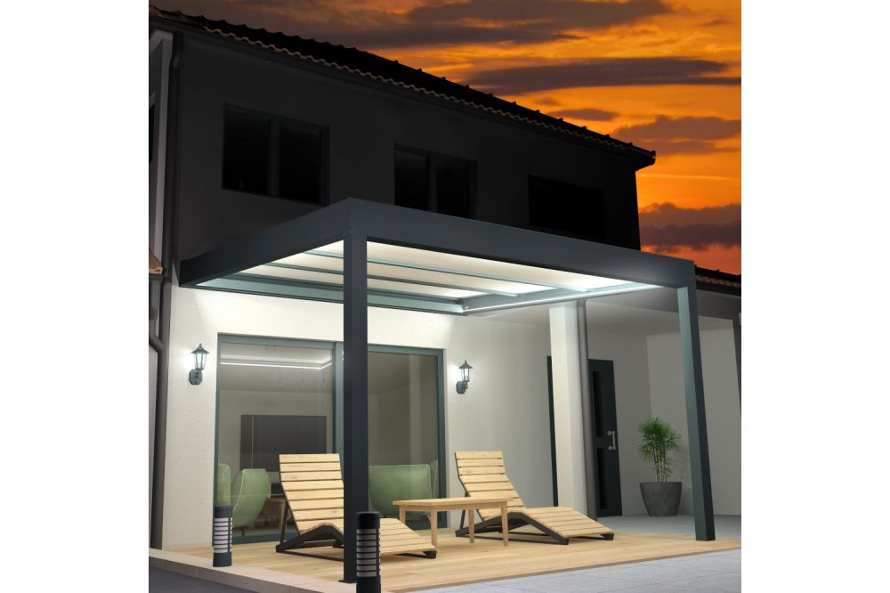 Pergola isotoit® CONFORT rétractable Gris anthracite 3,50x4,40m + LED