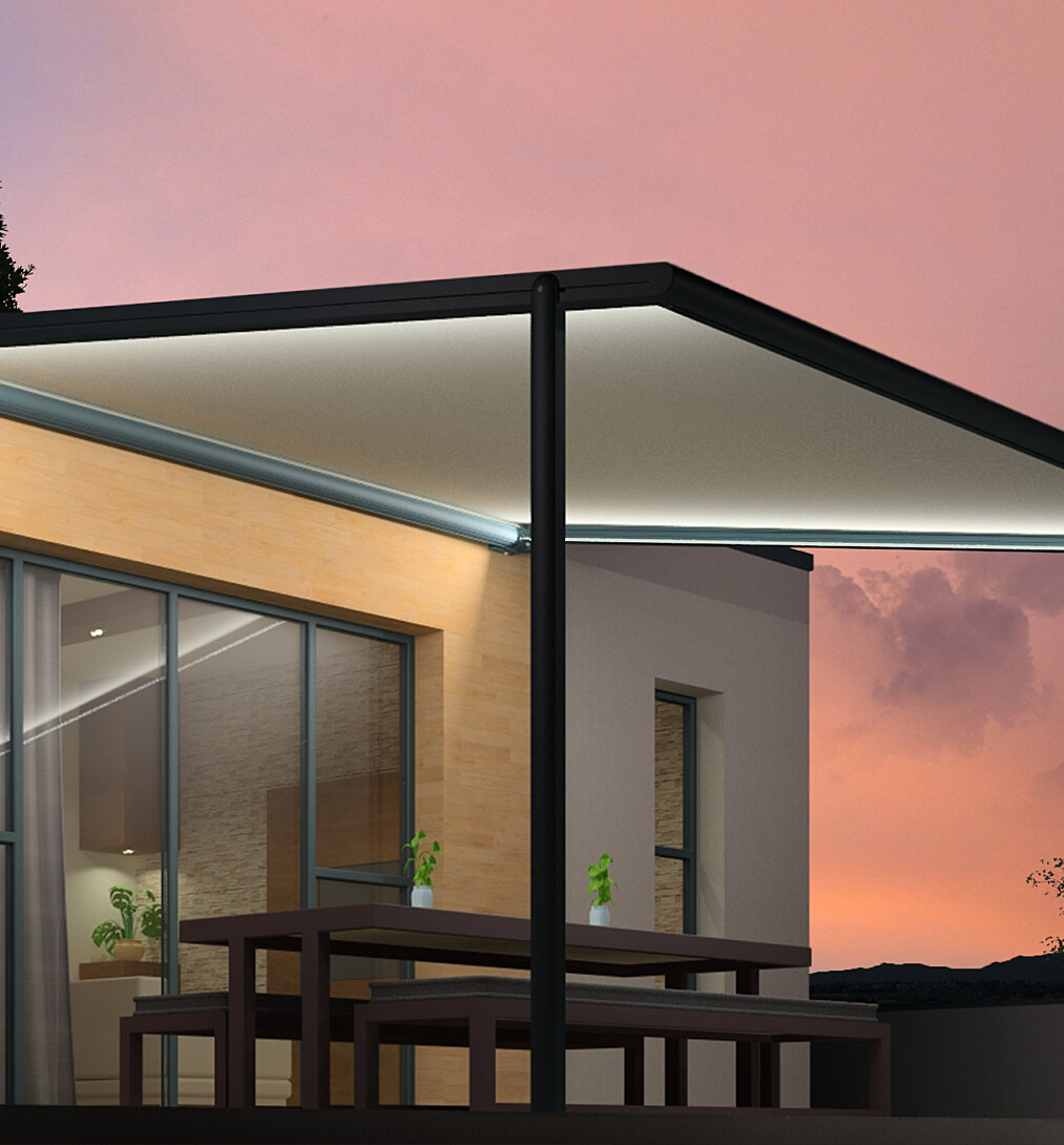 Compromis entre le store et la pergola bioclimatique, la MELODIE est la solution idéale pour profiter pleinement de votre extérieur tout en vous protégeant du soleil. Son design épuré et sa grande modularité s'adaptent à tous les styles de maison et de jardin. Lambrequin intégré : d’une hauteur de 1m50. Protège des rayons du soleil les plus bas et fait office de brise vue. Ombre modulable : Grâce à son inclinaison réglable de 5° à 15°, elle offre un ombrage personnalisé en fonction de l'ensoleillement et de vos envies.