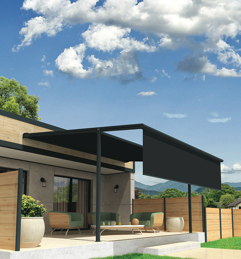 Compromis entre le store et la pergola bioclimatique, la MELODIE est la solution idéale pour profiter pleinement de votre extérieur tout en vous protégeant du soleil. Son design épuré et sa grande modularité s'adaptent à tous les styles de maison et de jardin. Lambrequin intégré : d’une hauteur de 1m50. Protège des rayons du soleil les plus bas et fait office de brise vue. Ombre modulable : Grâce à son inclinaison réglable de 5° à 15°, elle offre un ombrage personnalisé en fonction de l'ensoleillement et de vos envies.