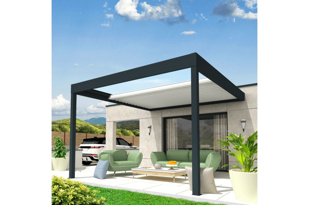 - Pergola - Pergola rétractable - Aluminium extrudé thermolaqué - Manœuvre moteur + télécommande