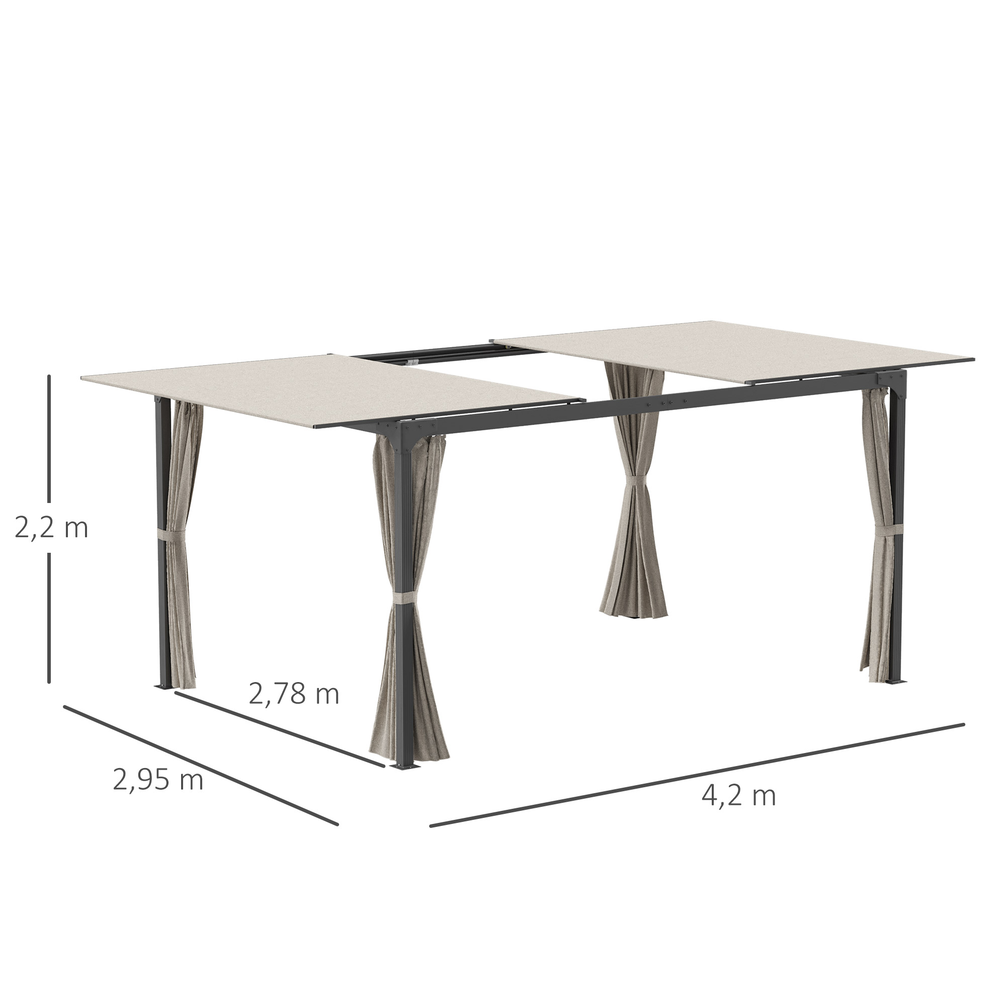 Pergola rétractable dim. 2,95L x 2,95l x 2,20H m double toit coulissant 4 rideaux alu. acier noir polyest