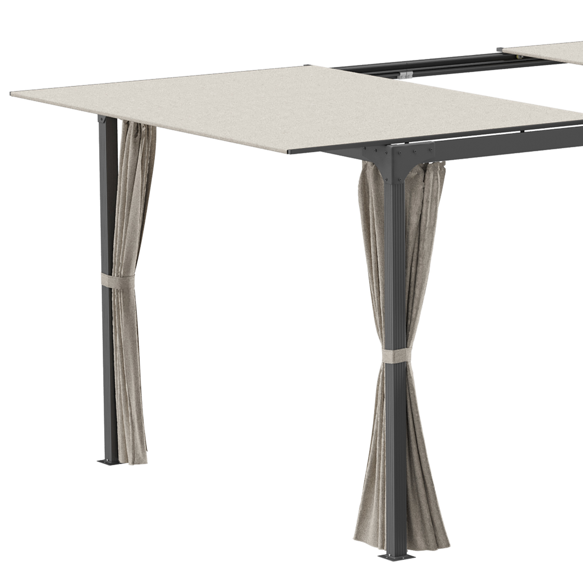 Cette splendide pergola rétractable avec double toit coulissant et 4 rideaux vous permettra de passer d'agréables moments à l'extérieur tout en étant protégé du soleil ou au contraire tout en étant exposé totalement ou partiellement à votre guise. C'est la pergola indispensable pour profiter au maximum de l'été !