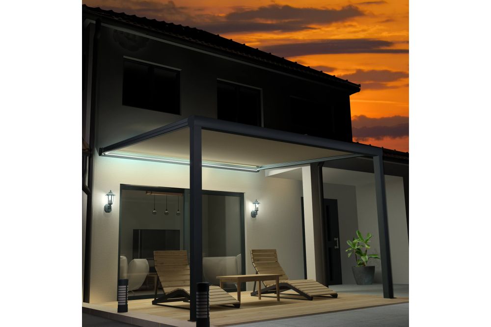 Pergola toile SUNLIGHT Gris anthracite - écru 3,50x4,00m + LED